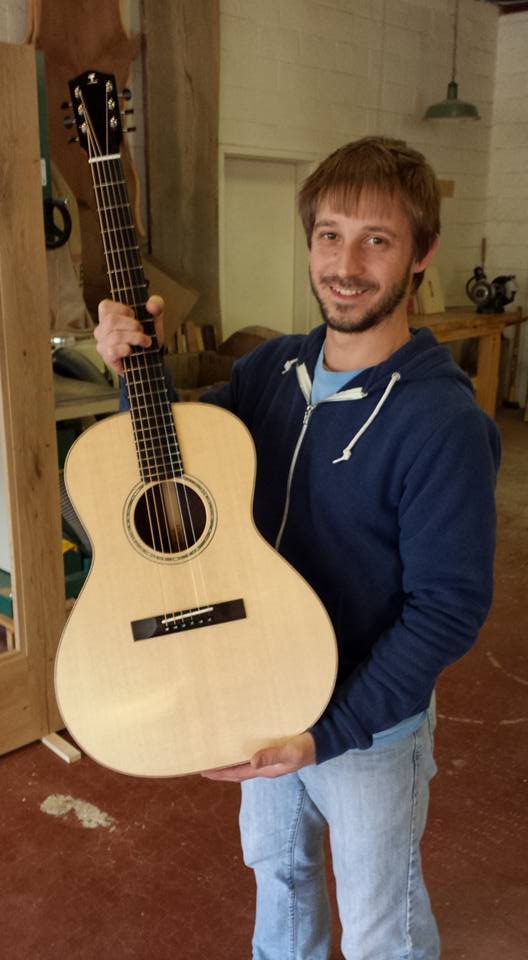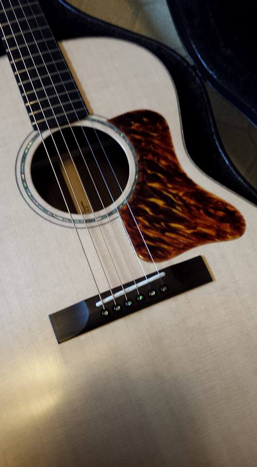 Acoustic Guitar The acoustic guitar did not arrive into the southern Appalachians until the late 19th.early 20th century with the arrival of the Sears and Roebuck Catalog. Most other stringed instruments in the region would have been built locally, but the guitar came through mail-order. I play a Chris Capozzoli Acoustic. Chris is an incredible luthier and has been building electric guitars and basses since 2009. He started building acoustic guitars in late 2014. He owns #1, a friend of mine bought #2 that Chris had on display at a fiddlers' convention, I own #3, which was Chris' first customized acoustic. The guitar is based on a Gibson L-00, and the pickguard was made by Wayne Henderson from Rugby, VA. Check out Chris facebook page here.